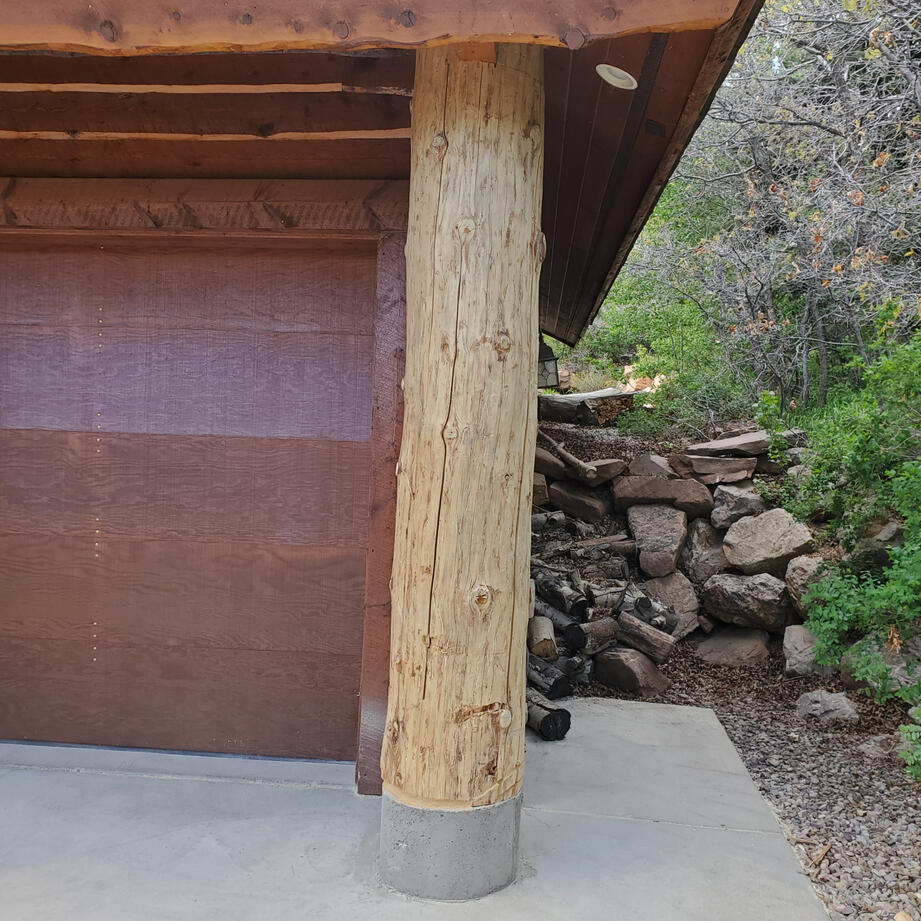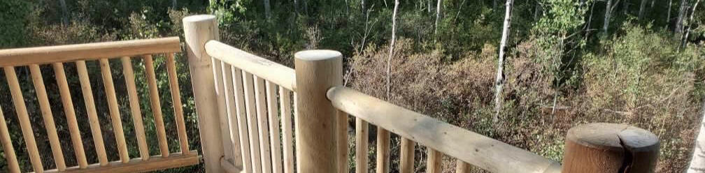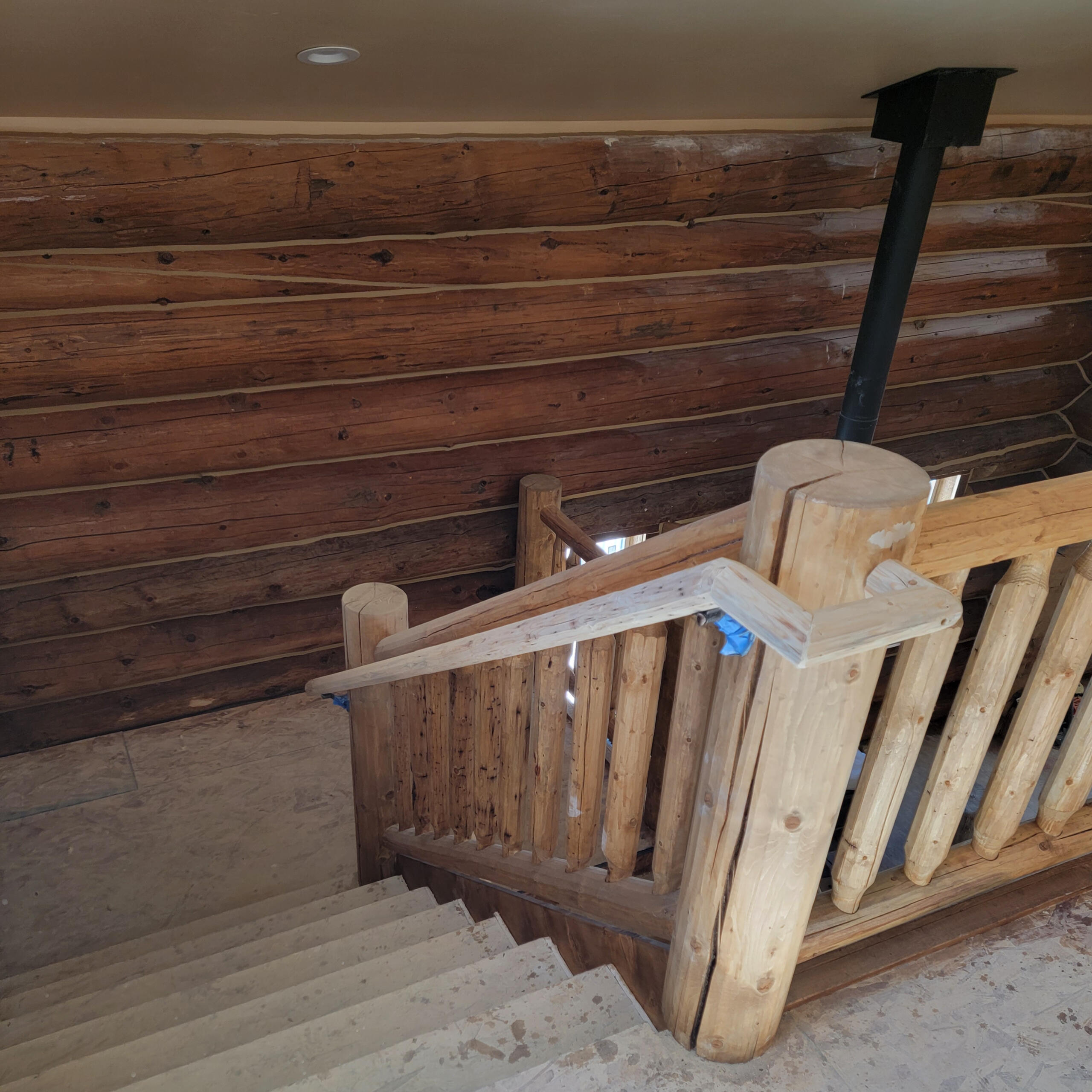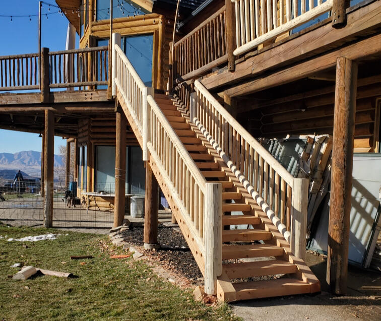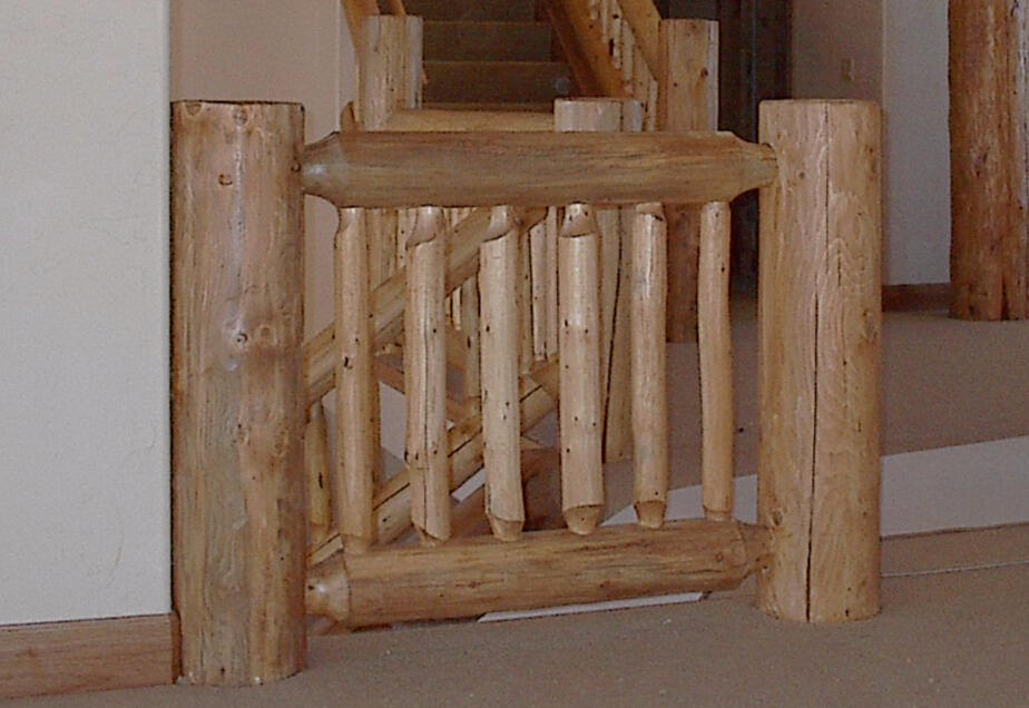 A rustic railing designed for durability. Each log is precisely cut so the railing fits snuggly around each post. Requires stain every 2 years if outside and 10 if inside.See are portfolio of decks for additional pictures. Email us to start the process